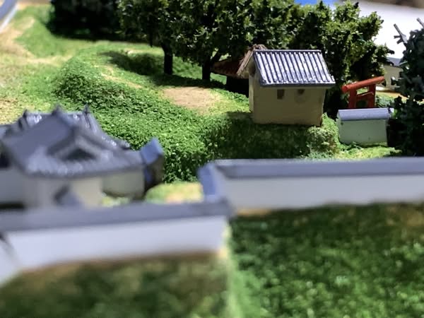 川越城の城塀を作ってます。あとは城塀の瓦と植樹になります。横矢が結構凄いですね♪ ここは何処の細道じゃ、天神様の細道じゃ、どうぞ通してくだしゃんさんせ♪の童謡の唄の天神様があるんです。少し黒い色の所が天神様です。