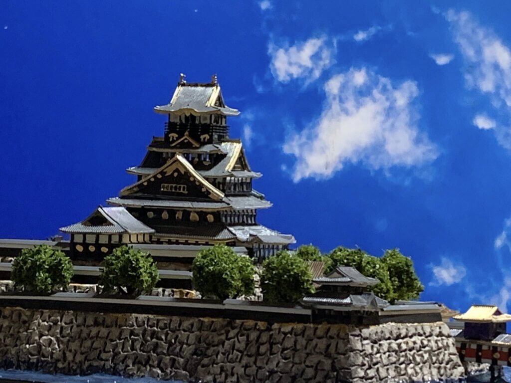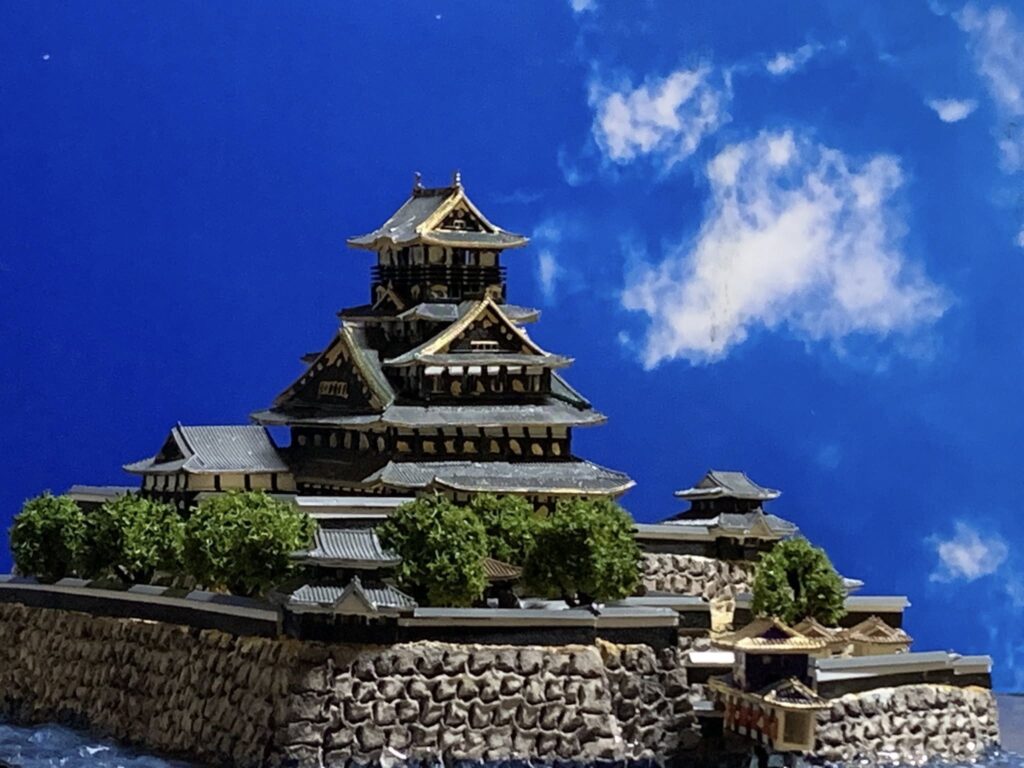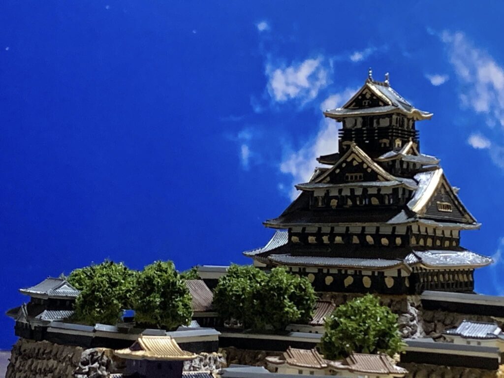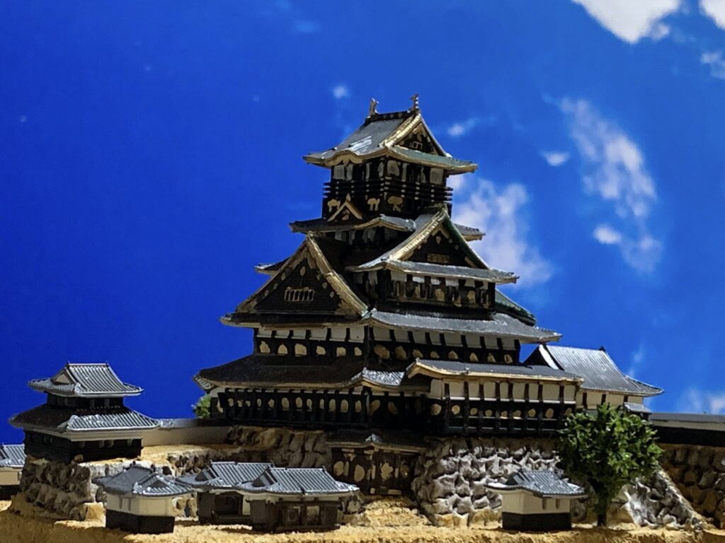 お城コレクションの面白さとしては、天守の時代変化なども楽しめると思います。このシリーズ単体でも楽しめるし、メインのお城のジオラマの側に同じお城の創建時の天守や時代によって変わった天守なども並べられる。例えば徳川期の大阪城天守などや、会津若松にあった上杉景勝の黒川城など #城コレ
